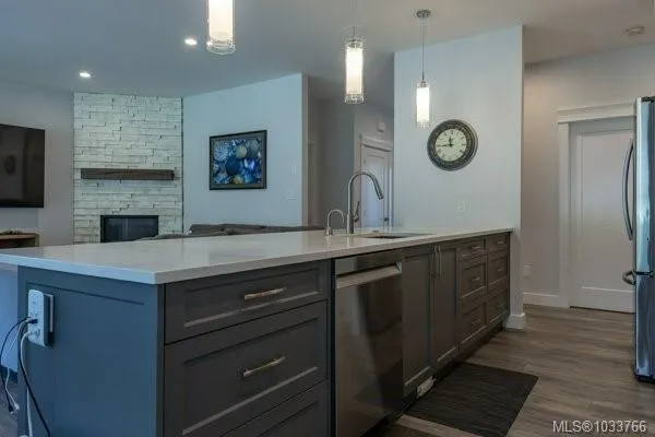 Welcome to this beautifully designed rancher, offering the perfect blend of comfort and functionality. This 3-bedroom, 2-bathroom home features a spacious primary suite complete with a luxurious , ensuite boasting heated floors, shower, soaker tub, and double sinks . The heart of the home is the stunning kitchen, finished with quartz countertops and seamlessly flowing into the open-concept living area—ideal for entertaining and everyday living. Enjoy cozy evenings by the gas fireplace while still being connected to guests. Thoughtfully designed to help people with mobility issues this home ensures ease of mobility throughout. Step outside to a flat, large, private backyard featuring a sprinkler system and convenient BBQ hookup—perfect for relaxing or hosting gatherings. A true gem for those seeking style, accessibility, and effortless living. Such a private setting but only a few minutes from town and even close to the golf course.