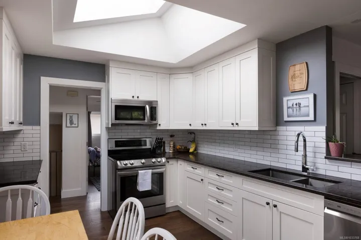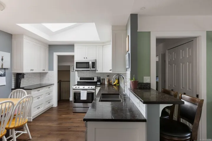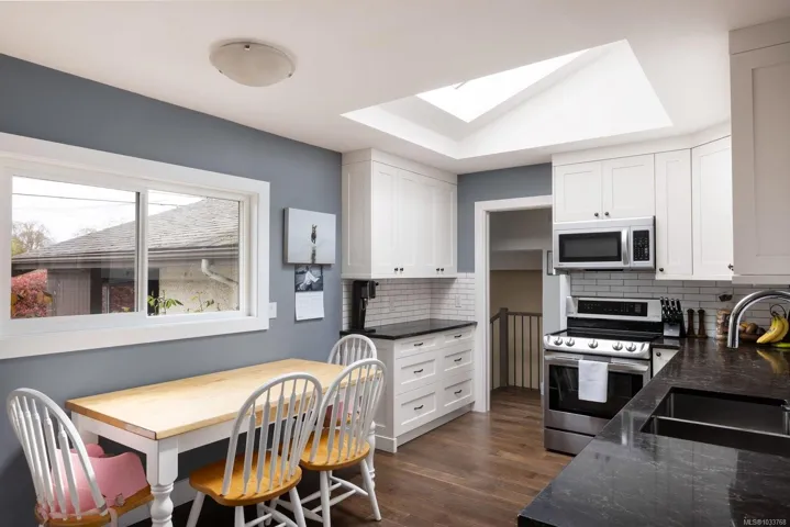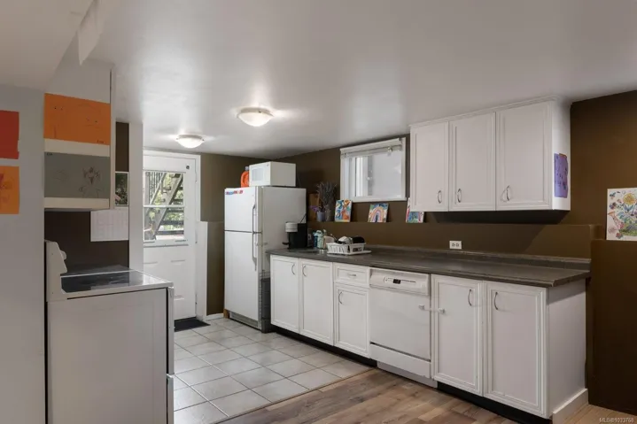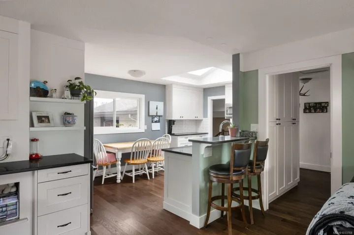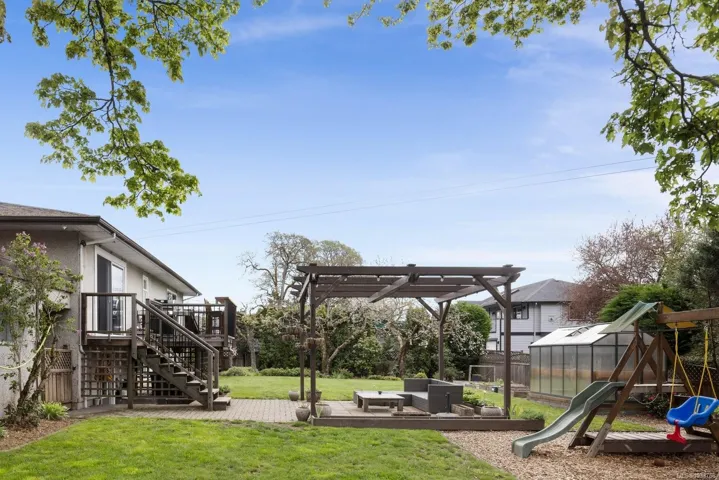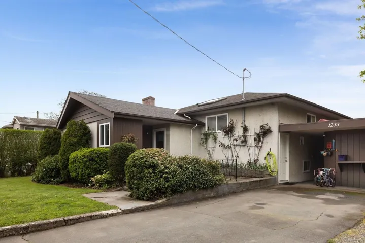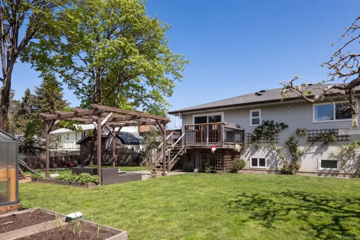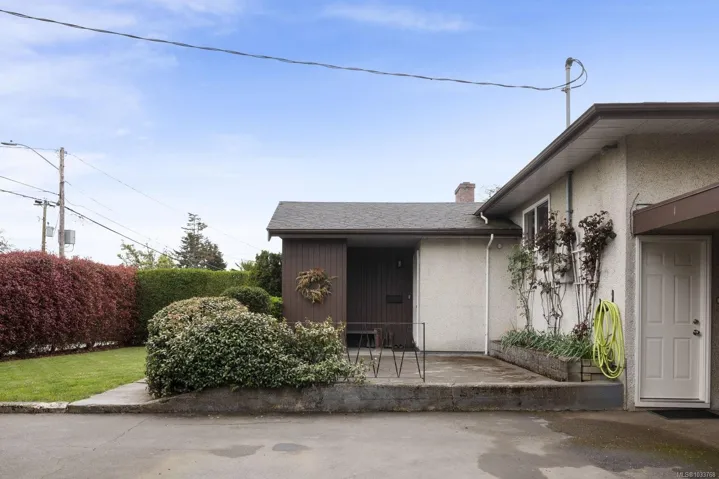 Set on a large, private 10,000 + square foot lot, this property offers an excellent opportunity for families, young professionals or empty nesters with a mortgage helper. The main home features 3 bedrooms and 2 bathrooms, including an ensuite, a renovated kitchen, and hardwood flooring throughout. Comfort is assured year-round with a heat pump and A/C, along with newer vinyl windows and thoughtful updates throughout. The bright and self-contained 1 bedroom, 1 bathroom suite is an ideal income generator, with strong rental appeal and consistently high demand. Outside, enjoy a sunny south-facing backyard with mature hedging for privacy, a playground, pergola, greenhouse, and fruit trees, including apple, pear, and peach. Additional highlights include a fully fenced yard, excellent workshop and storage spaces, and plenty of off-street parking. Conveniently located with easy access to the airport, ferries, and downtown Victoria, and within the Strawberry Vale school catchment.