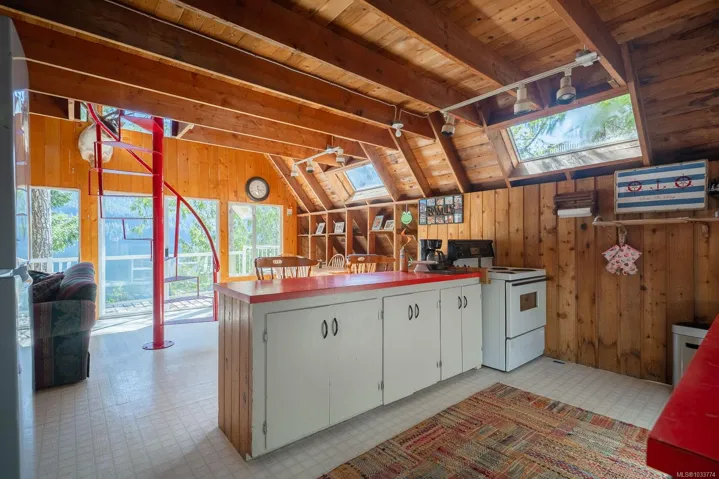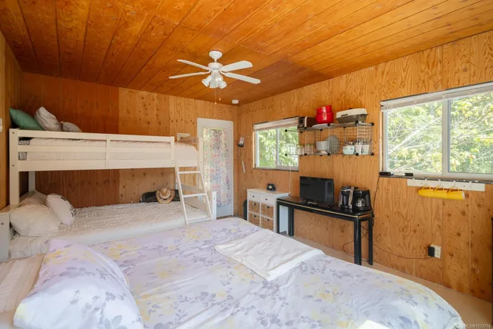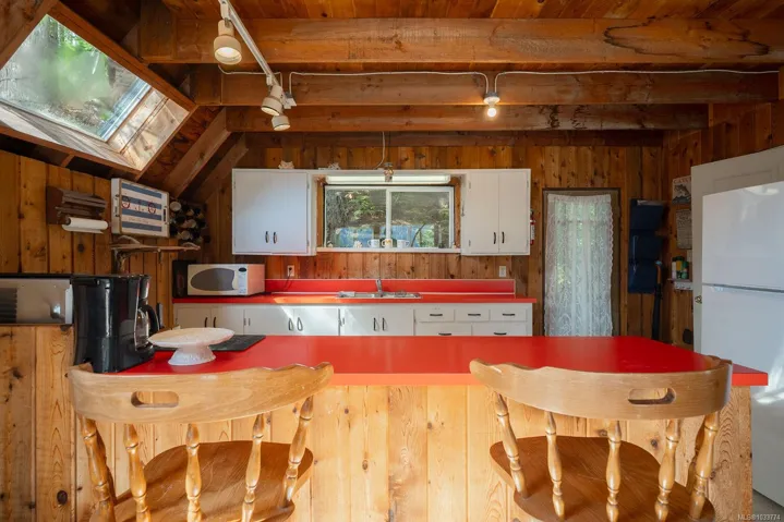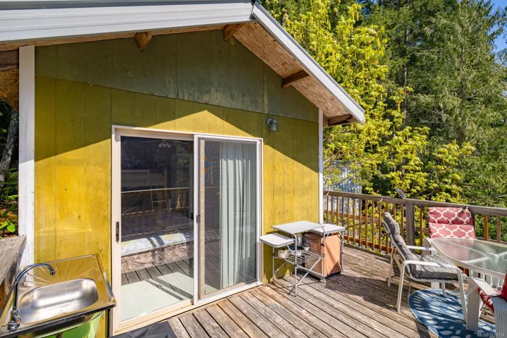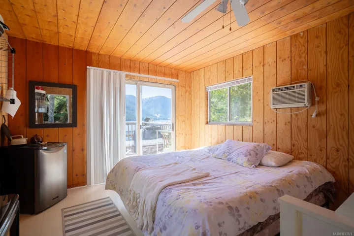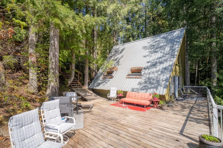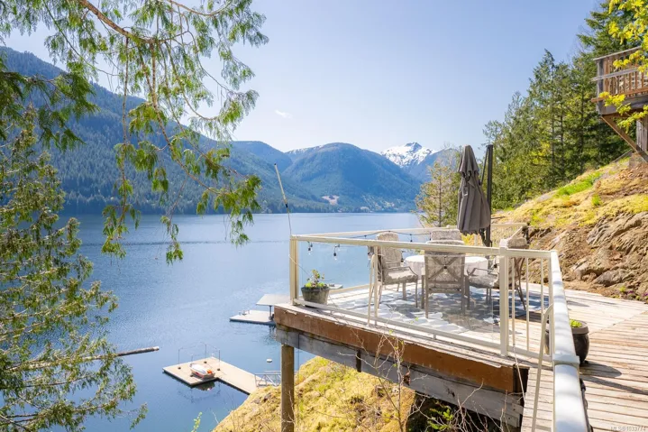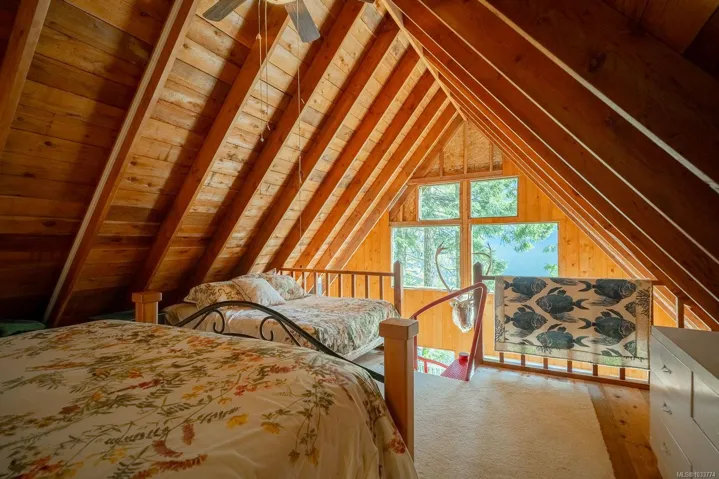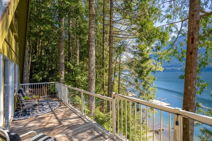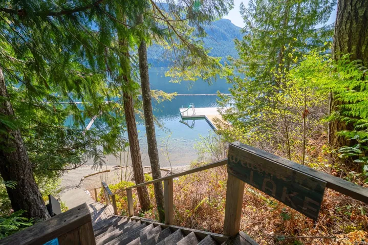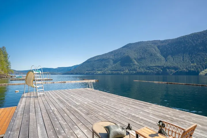 Welcome to your private slice of paradise on beautiful Sproat Lake. Set on 0.51 acres of lakefront, this charming A-frame main cabin is filled with warmth and character, featuring rich wood interiors, a cozy propane stove, and skylights that flood the space with natural light. The open kitchen with breakfast bar flows effortlessly into the living area, while the loft above offers a peaceful retreat—all perfectly positioned to capture stunning lake and mountain views. Step out onto the spacious deck to relax and take in the scenery or make use of the convenient lower-level storage. The property also includes a separate bunkie with its own deck, ideal for guests, along with an outdoor shower for a true West Coast getaway experience. Each level of the property offers its own inviting space to unwind, leading you down to a sand and pebble beach and a well-maintained dock—perfect for swimming, boating, or a quiet paddle on the lake. This is lakefront living at its most serene and authentic.