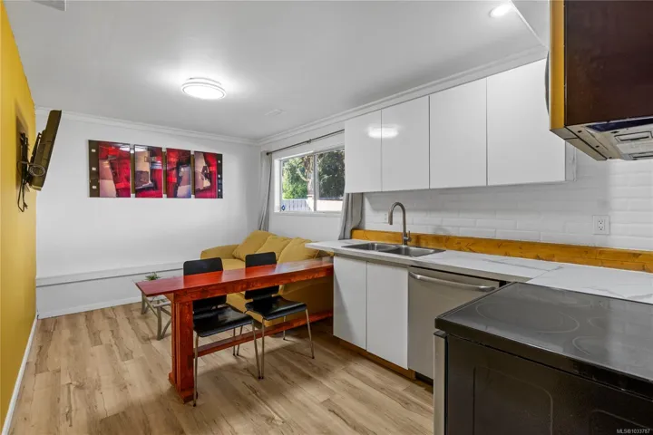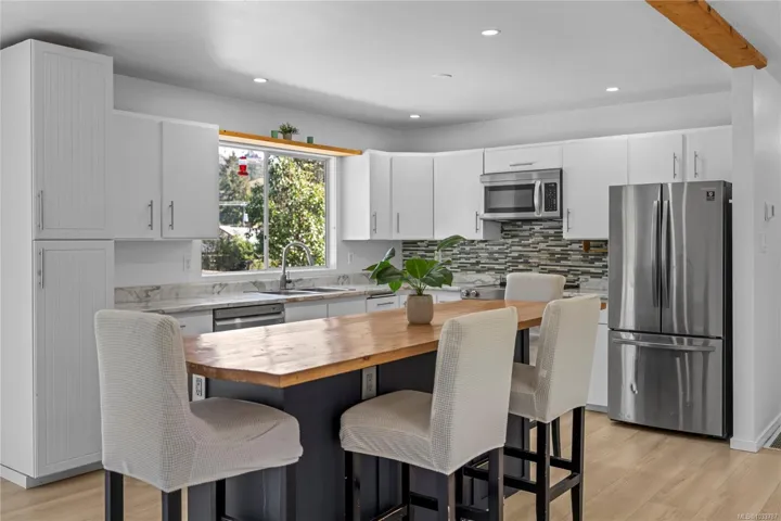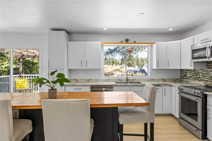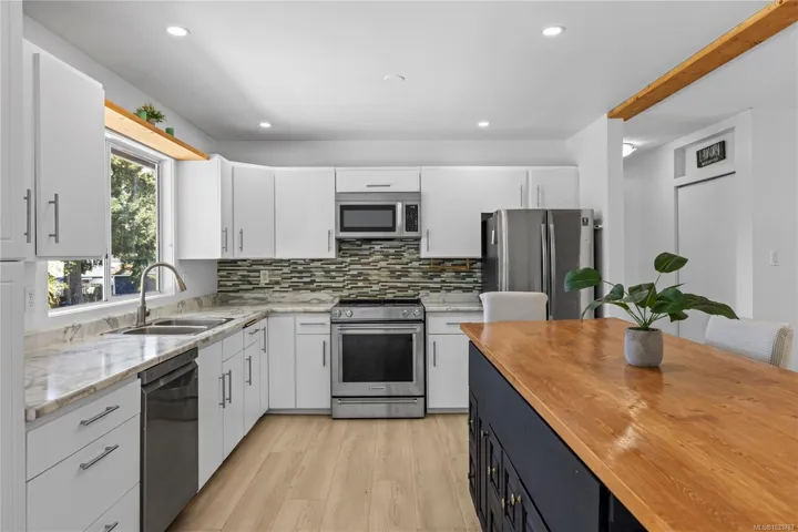 FAMILY HOME WITH SUITE… Located on a quiet street in the desirable Uplands area, this 5 bedroom, 2 bathroom home offers flexibility, functionality & income potential. The main level features 3 bedrooms, a bright open living space & a renovated kitchen with updated countertops, island & improved flow. Downstairs offers a spacious rec room plus a large storage/mudroom off the entry. The lower level also includes a fully self-contained 2 bedroom suite with its own entrance, kitchen, bathroom & separate laundry, ideal for extended family or a mortgage helper. Major updates include a heat pump with A/C (2025), upgraded 150 amp electrical service, perimeter drains (2023) & newer flooring throughout. The fully fenced 8,175 sqft lot features a front yard play area with playhouse, swing set & tree swing, plus a private backyard, gardens, decks & ample parking. Close to schools, parks & shopping.