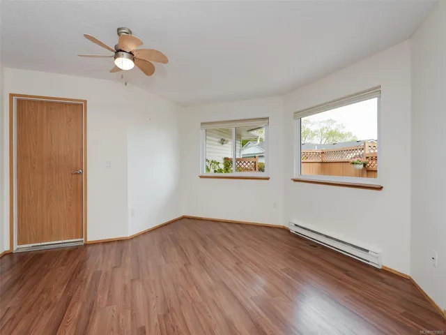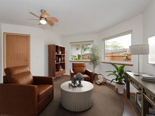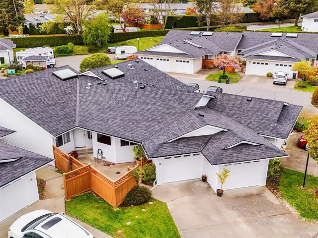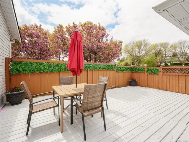 Enjoy the sunshine on your SOUTH FACING fully fenced patio knowing you have AIR CONDITIONING to keep you cool inside your home! This bright, spacious townhome measured at 1426sqft, offers one level living with 2 large bedrooms and 2 full bathrooms. The home features open concept living and dining areas, family room and laundry off the kitchen, a primary suite with built-in closets, two car garage, pull down stairs to the attic access and find more storage, plus a crawlspace too. Oak Glen Estates is a peaceful well-managed and friendly community in the heart of Saanich. Located next to Panama Hill Park and close to Colquitz Creek Trail and Park, shopping, recreation and transit. The entire complex will benefit from BRAND NEW ROOFS, a clubhouse for bingo and other events, guest suite, library, fitness room and games area all within this welcoming complex. Don’t miss your opportunity to enjoy private, one level living in this family and PET FRIENDLY strata.
