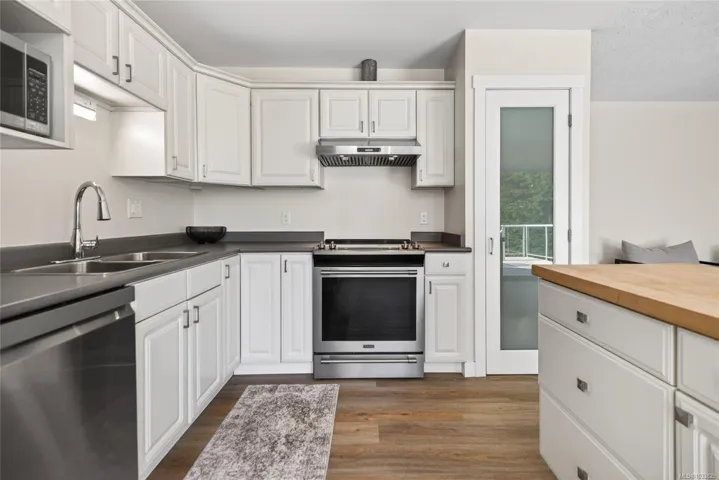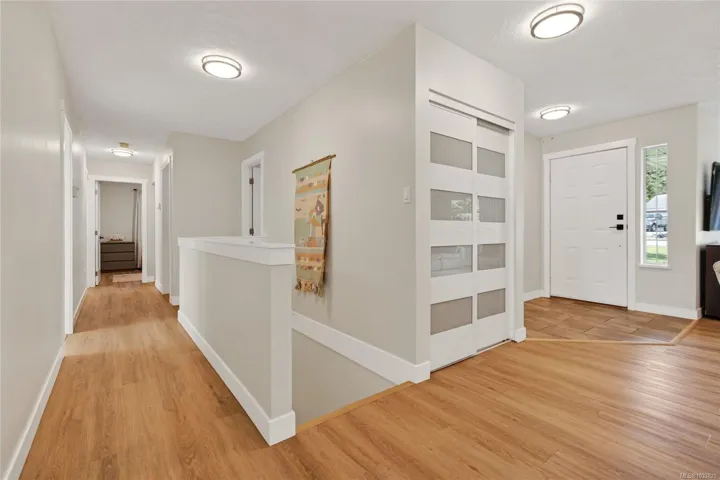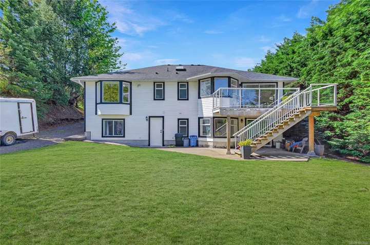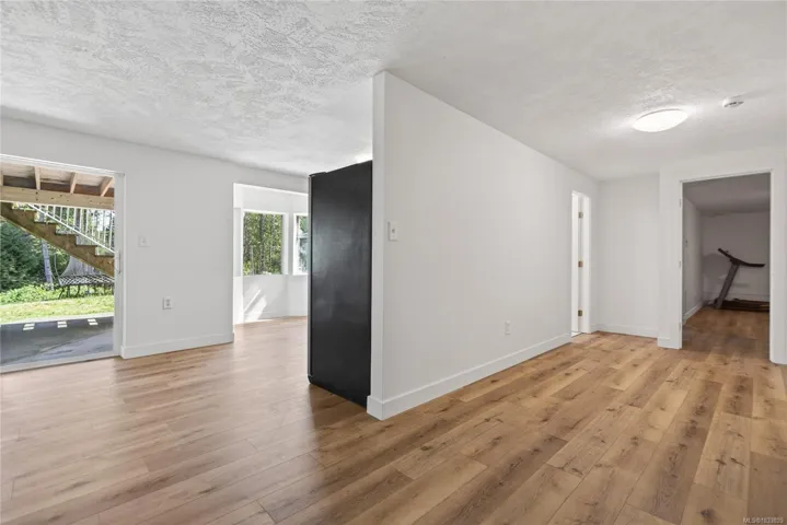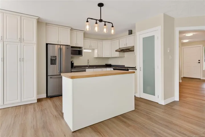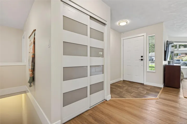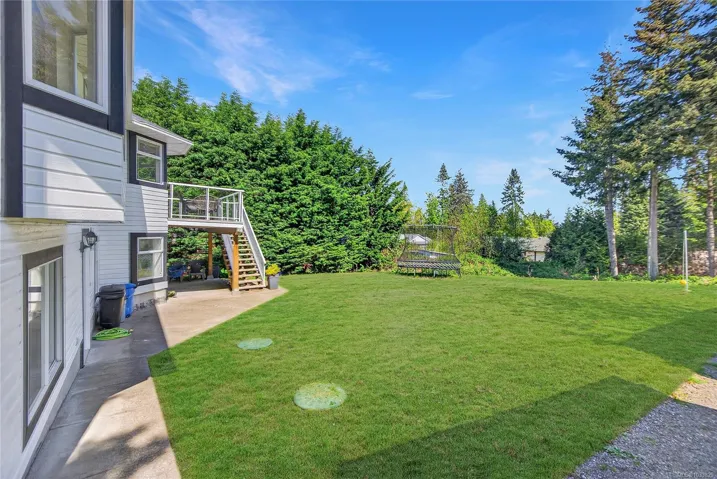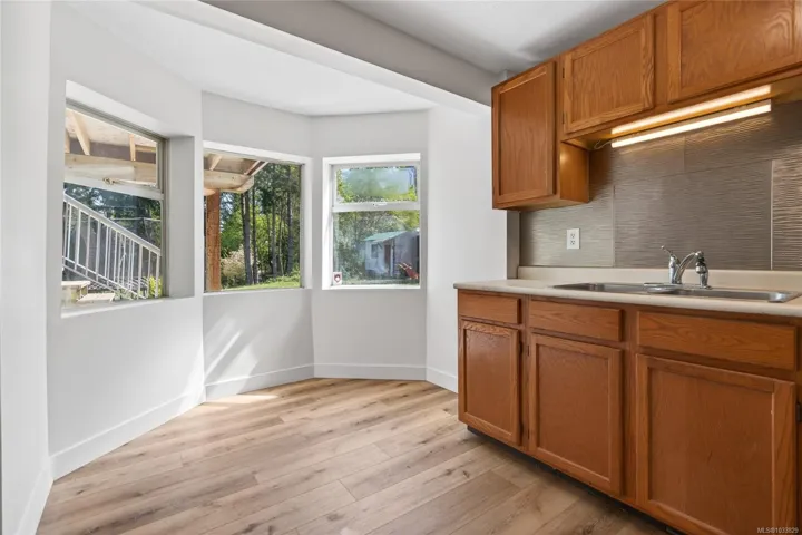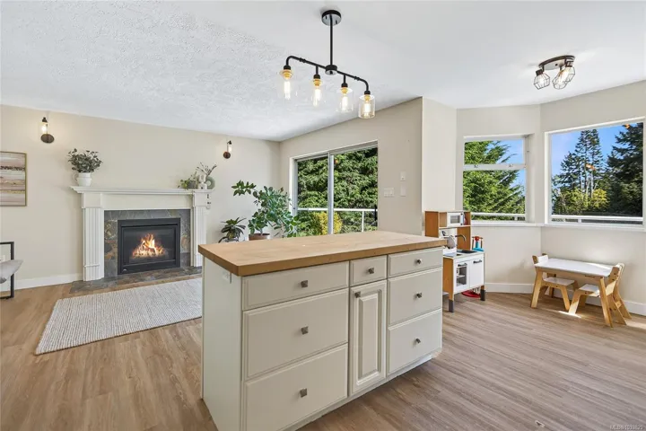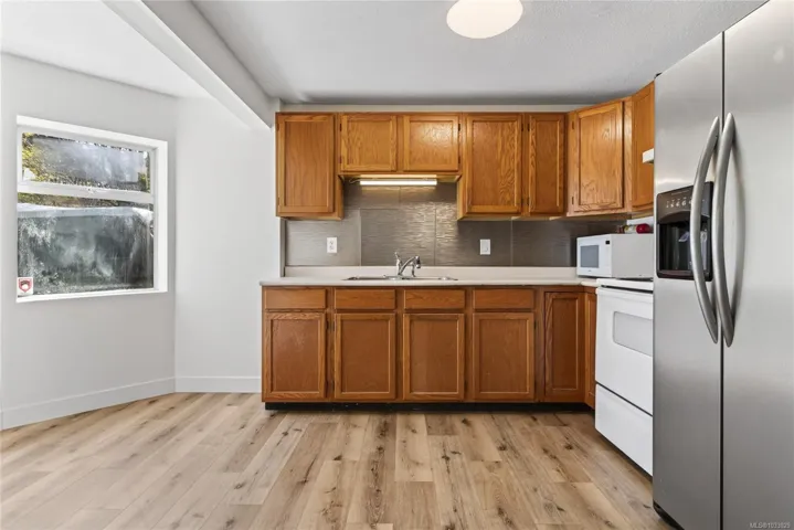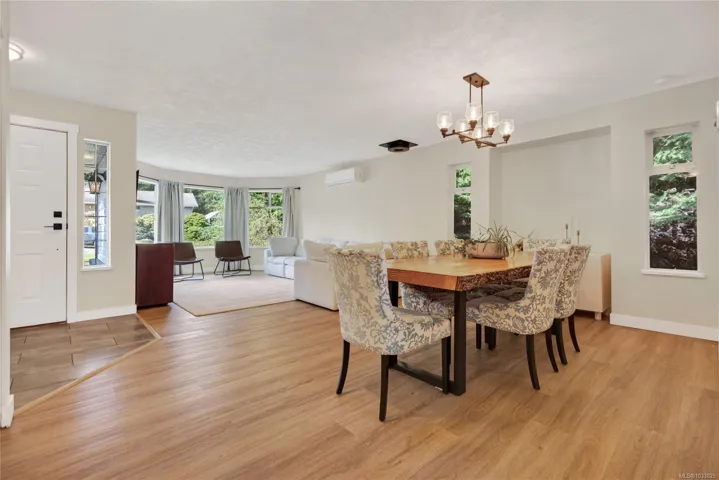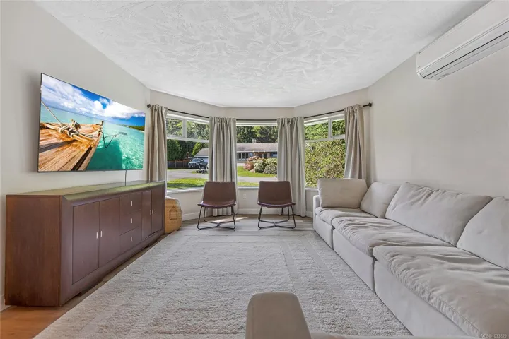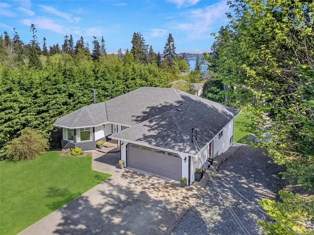 Beautifully updated main level entry rancher with full walkout lower level on a 0.53 acre R-1 zoned lot in Royston. Four bedrooms, three bathrooms, 2,970 sq ft finished (3,734 total). The bright main level offers a formal living room with bay window, updated kitchen with stainless appliances and butcher block island, family room with gas fireplace, and deck with ocean views. Primary suite with walk in closet and three piece ensuite. The 1,310 sq ft walkout lower level lives equally well as family space or a non-conforming suite, with second living room, 4th bedroom, oversized den, 2nd kitchen, four piece bath plumbed for laundry, plus separate entrance and parking (suite currently non conforming, buyer to verify with the CVRD). Recent updates: vinyl plank flooring, fresh paint, three updated bathrooms, ductless heat pump, fibreglass roof approx 11 years. Room for a future shop or carriage house. Walking distance to the Seawalk, Gartley Beach, and rail trail; five minutes to Courtenay.