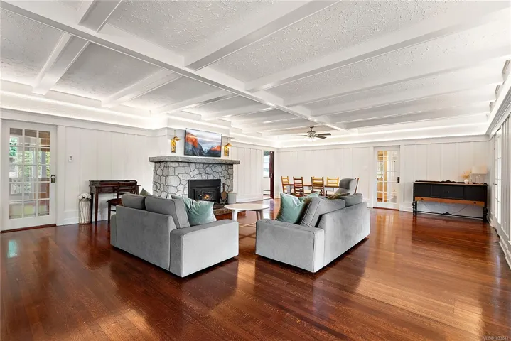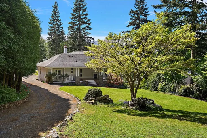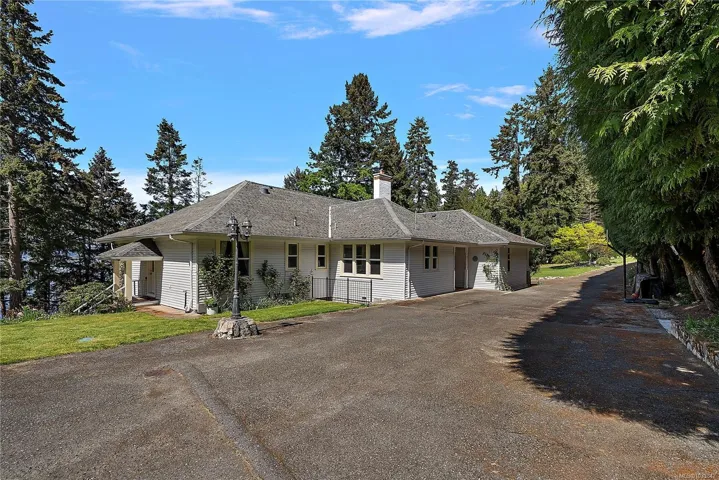 OPEN HOUSE – Sun. May 3nd 1:30-3pm – Beautifully restored 1906 landmark character home in N. Saanich on a private, nearly level 0.84-acre lot w/ stunning ocean views. This exceptional 3,738 sq.ft. residence offers 5 bed/5 bath, incl. 2 spacious primary suites—each w/ ensuite & breathtaking water vistas; 1 on the main. Rich cherry wood & oak flooring, coffered ceilings & grand granite fireplace highlight the timeless craftsmanship throughout the main living & dining areas. Thoughtfully updated, seamlessly blending historic charm w/ modern comfort. Incl. rebuilt 1 bed detached cottage—ideal for extended family, visitors, or potential income—plus a detached dbl garage/workshop w/ 240V power for EV charging or hobbyists. The expansive lower level offers 2,000+ sq. ft. of unfinished space w/ endless potential. Surrounded by beautifully landscaped grounds w/ privacy, space & captivating views—a rare opportunity to own a piece of North Saanich history. Must be seen to be fully appreciated.