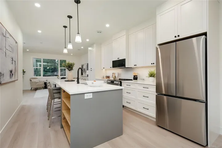 Glen Isle Townhomes @ 960 Jenkins – 5 Left! Thoughtfully crafted Townhomes that seamlessly blend everyday functionality with refined design. Situated steps from Belmont Market, they offer a peaceful retreat with all the conveniences of urban living at your doorstep. The main level boasts a bright, open-concept living space with oversized windows and electric fireplace. Upstairs, a well appointed 3 bed sleeping level, including laundry and generous primary with 2 closets & ensuite w/ heated floor. Comfort & quality abound w/ Premium Upgrades Included like 9 ft & Vaulted ceilings, Ducted Heat Pump system, ~43ft tandem garage w/ Epoxy coating, quartz counters & high end laminate floors. With modern design and walkable/bikeable location, this home is an exceptional opportunity to live in one of Langford’s most connected neighbourhoods. Photos may not be of the exact unit. Move In Ready! Price+GST – Ask your Real Estate professional if GST & PPTT rebates may apply to you.
