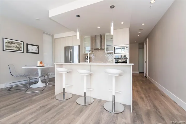 Fantastic 2 bed, 2 bath corner suite in the highly sought-after steel and concrete Legato building, perfectly positioned in the heart of downtown Victoria. This bright, modern home features an efficient open floor plan, floor-to-ceiling windows, and a gourmet kitchen with quartz countertops, stainless steel appliances, custom cabinetry, large pantry, and an island with breakfast bar. The spacious layout includes in-suite laundry and excellent storage. Building amenities include a fitness room, meeting room, bike storage, and an impressive outdoor patio with garden and full outdoor kitchen—ideal for entertaining. Secure underground parking and storage are included. With a Walk Score of 99, this location offers unbeatable access to shops, restaurants, cafés, and the Inner Harbour. Pet- and rental-friendly.