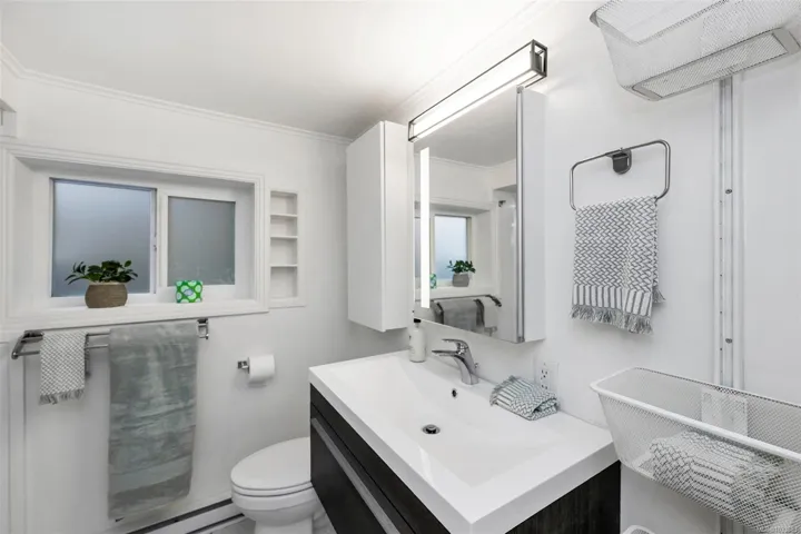 Bright, self-contained 2 bedroom suite offers hardwood floors, newer kitchen, updated bath, and its own laundry—an excellent mortgage helper.