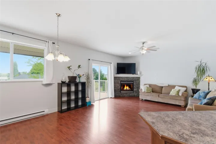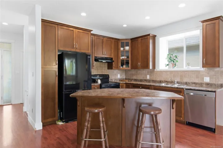 Welcome to this level-entry home with a bright 2-bedroom legal suite, close to schools, amenities, parks, rec centres, VIU, Nanaimo Aquatic Centre and University Village. The main floor offers 9 ft ceilings, an open great room layout, dining area, cozy gas fireplace and stained maple kitchen with island. Step out to the partially covered back deck, ideal for year-round BBQs, while the irrigated front landscaping adds curb appeal. The spacious primary bedroom features a walk-in closet and ensuite, with two additional bedrooms offering flexibility for family, guests or a home office. The large backyard provides plenty of room for gardening, kids and pets. Downstairs includes great storage for the upper level, plus a bright and spacious 2-bedroom legal suite, which will be vacant—an excellent option for multi-generational living or mortgage-helper potential. All info and data approximate.