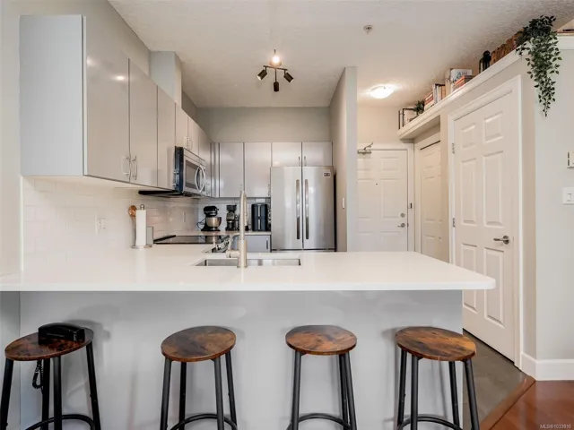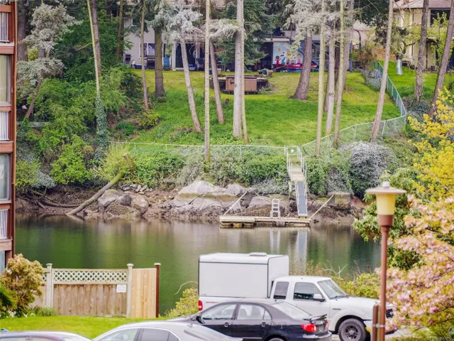 Open Sat 12-2pm. Welcome to 76 Gorge Road—an exceptional corner unit with beautiful views of the picturesque Gorge Waterway. Built in 2005, this bright & beautifully renovated 2-bedroom, 1-bath home offers an open-concept layout with 9-foot ceilings, a cozy electric fireplace, and stainless steel appliances. Enjoy two private balconies, perfect for taking in the serene water views. This apartment features an abundant cabinetry and lots of in-suite storage, plus secured parking and bike storage. Pet-friendly (including large pets), rentals allowed, and no age restrictions. Ideally located near walking trails, Gorge Park, and all amenities, with easy access to major bus routes to downtown, UVic, Royal Oak, and Oak Bay. Professionally managed for peace of mind. This is priced well in this market, so won’t last long. Call today!