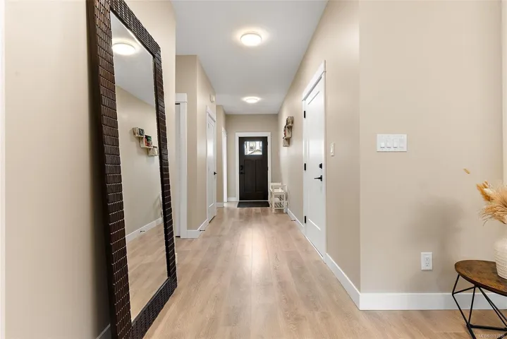 A premier south facing lot backing onto protected parkland that cannot be built out, delivering permanent privacy, all day sun & uninterrupted forest views. Set at the end of a quiet cul de sac, this immaculate 2022 TEKloch home provides 2,630 finished sqft. plus large double garage & fully self contained 1 bed legal suite ideal for family or income. The bright no step main level features a spacious living room w/gas fireplace, walls of windows & seamless access to a forest view deck, anchored by a chef inspired island kitchen w/quartz counters. The primary retreat enjoys serene green outlooks, a walk in closet & heated tile ensuite. Efficient Rinnai direct vent ductless gas heat & on demand hot water ensure year round comfort. While many newer homes offer size & finish, few offer permanent south facing privacy, a large sun filled lawn & a protected forest outlook, an increasingly scarce and irreplaceable value.