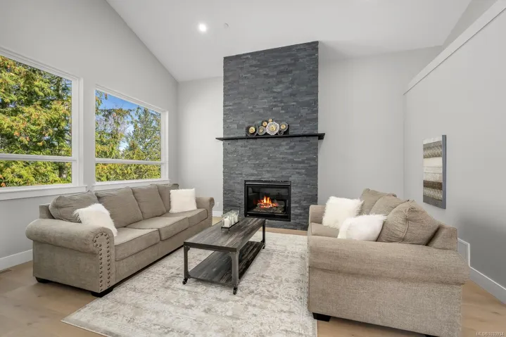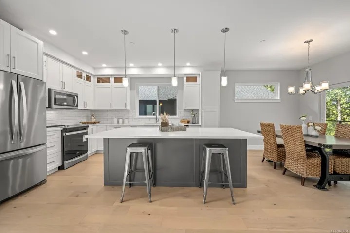 such as engineered hardwood, quartz countertops, and a heat pump for year-round comfort.