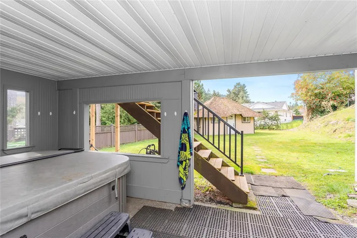 I’m pleased to offer for sale this well layed out 4 bd 3 ba family home on a quiet cul de sac in an ideal family neighbourhood. Built in 1997 on a 13,068 sqft lot, this 2 storey home is only blocks from the ocean in Nanaimo’s prestigious Rocky Point. The main floor is a traditional 3 bed, 2 bath layout with an open concept kitchen, dining and living room. The primary bedroom has a walk in closet, ensuite, separate water closet and sliding door to a rear deck. The lower level adds another full bedroom, laundry facility and a second family room. Upgrades include newer roof, leaf guard gutters, and irrigation system. A flat 20’ x 75’ driveway leads to a 33′ deep double car garage measuring 716 sq ft in total. The side of the home has access to a large backyard and secure RV/Boat/Car Storage. The fully fenced rear yard has an enclosed, powered palapa for a studio/home office/play area/storage. The rear of the home has a private covered hot tub area and nearly new 6 person hot tub.