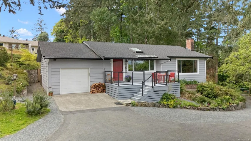 OH-Sun May3-11:30-1pm- Tucked at the end of a quiet cul-de-sac, this private 0.5 acre Deep Cove property offers serenity just 10min. from amenities. A long driveway leads to a home perched among the trees with views across Satellite Channel to Mt. Tuam on Salt Spring Island. This 3 bd rancher features an open-concept layout with minimal hallways. The great room hosts dinners for 10 while feeling warm & intimate. Updated kitchen boasts a live-edge breakfast bar, cork flooring, & a Vermont Castings wood stove. Skylights & large windows flood the home with natural light. Primary bed includes ensuite and generous closets; 3rd bed suits a home office. New roof for peace of mind. Set in the Garry Oak ecosystem with arbutus and Douglas fir—a low-maintenance haven for wildlife. Enjoy garden areas w/ stone walls, deck, patio, & fire pit. Deep Cove—ocean on three sides—offers easy access to beaches, tidal walks, & trails. Steps to the marina, Blaauw Pier for moorage & kayaking, & R.O. Bull Park.