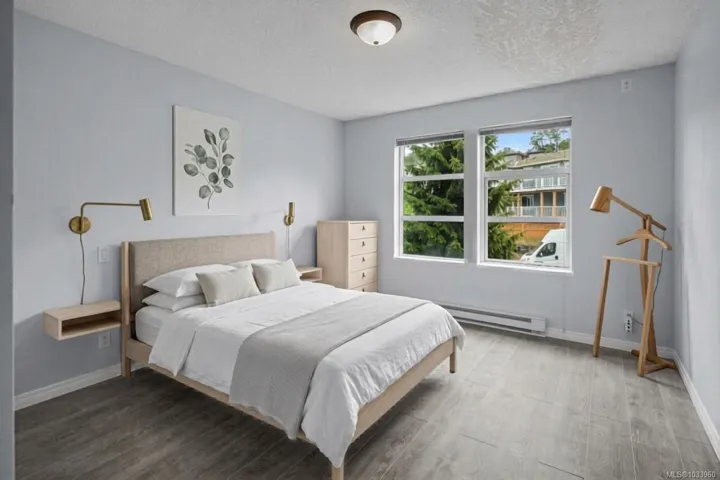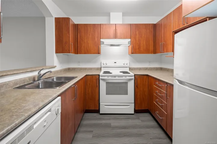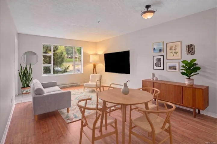 This large 2-bedroom apartment offers incredible potential in a sought-after, family-friendly neighbourhood. The functional floor plan (almost 900sq/ft) has two generous bedrooms, both on the quiet side of the building. The open plan living and dining area lead onto a covered balcony overlooking Garry Oaks and up Christmas Hill. New flooring and a renovated no-step shower in the ensuite, accessible through the large walk-thru closet. Easy access to the highway and Mackenzie for excellent transit options, or enjoy your underground secured parking space for your own ride. Stroll across to Rainbow Park and Swan Lake, or enjoy hiking through neighbouring oak meadows. Safe, secure building with a proactive strata (new roof recently completed and paid for). Ideal for first-time buyers looking to add value or investors seeking strong rental demand. This is a smart move in a smart location!