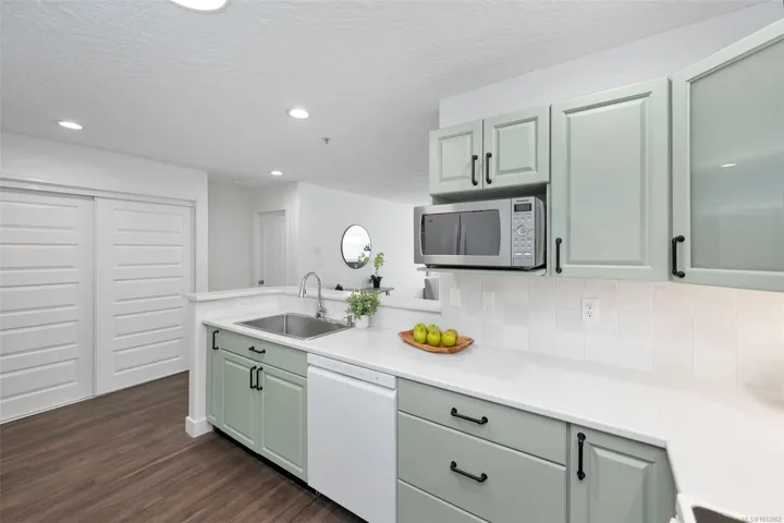 Open house Sunday Apr. 3, 1-3pm. This bright, quiet 2 Bedroom & 2 Bath unit affords great southern exposure with a view of the Gorge Waterway – it’s a corner unit which allows a cool cross breeze on warm evenings. The kitchen is well planned, with plenty of counter and cupboard space. Enjoy your BBQ on the deck while taking in the water view and listening to the fountain below. This unit features a great open design with bedrooms on opposite corners, the primary bedroom with ensuite and large walk-through closet. The laundry room is oversized for extra storage and perhaps a freezer. Take advantage of the inexpensive moorage for your boat and storage for your bikes, canoes & kayaks. Extra ammenities include the well-equipped gym, workshop, social room and a guest suite for only $35/nt. (max 3 nights). An easy walk/bike to Gorge Shopping Centre, Tillicum Mall, Silver City, Pearkes Rec Centre and directly across from Kinsmen Gorge Park. A must see!