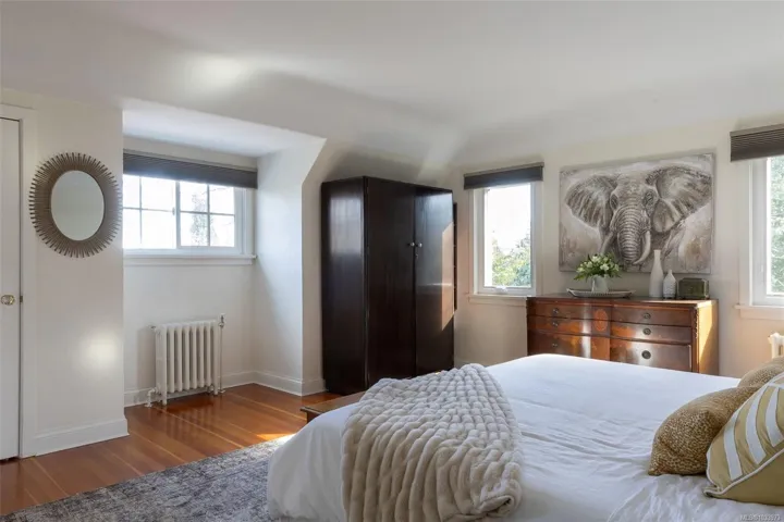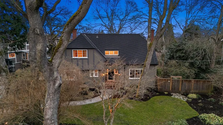 This architectural gem is located in the highly sought after Rockland neighbourhood. Beautifully renovated, this 1941 character home features a spectacular floor plan with 4 bedrooms, 3 bathrooms and stunning vistas. Beautiful hardwood floors with mahogany inlay, coved ceilings, french doors, and two gas fireplaces showcase the home’s classic character while complementing modern updates. The custom Urbana chefs kitchen with premium appliances and a large island opens to a bright family room, sunroom, and multi-level decks, including a covered BBQ lounge with gas heater for year-round enjoyment. The spacious primary suite features a beautifully appointed ensuite with radiant in-floor heating. Recent updates include new windows and hot water tank (2025), refreshed paint, bathroom improvements, landscaping enhancements, and an EV charger. Walk to Oak Bay Avenue, downtown, Government House, and Craigdarroch Castle. A rare opportunity to own a fully updated Rockland character home.