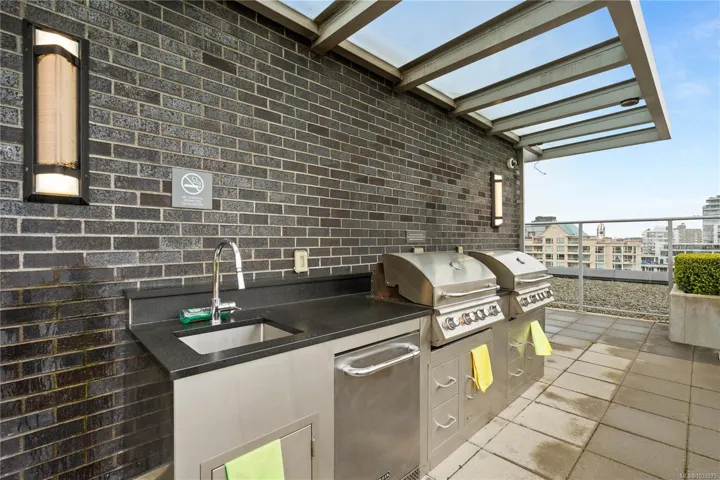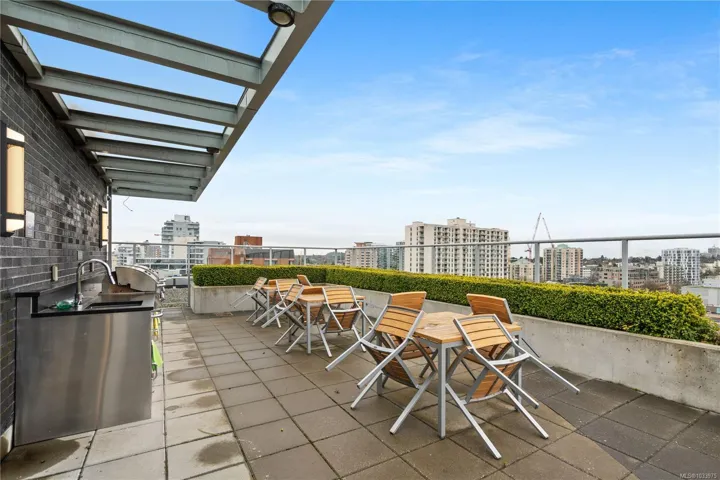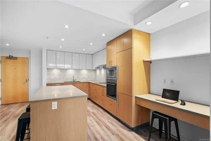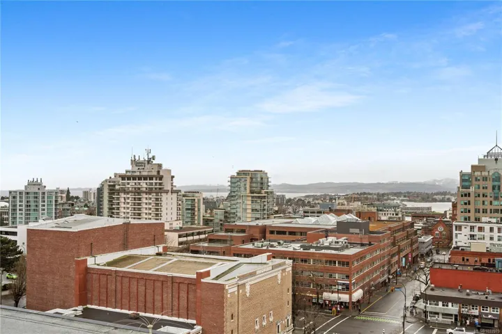 Bright, modern, and ideally located, this one-bedroom residence at 305–838 Broughton Street offers a refined urban lifestyle on the quiet edge of downtown Victoria. The suite features floor-to-ceiling windows, a chef-inspired kitchen, built-in office/desk space, an oversized walk-in closet, heated tile floors, and in-suite laundry. Secure underground parking with an EV charger, and a storage locker are included, along with access to five underground visitor parking stalls. The building’s rooftop patio is a standout amenity, showcasing panoramic 360-degree ocean, city, and mountain views, plus a common BBQ area for residents to enjoy. Set just steps from the Royal Theatre, Discovery Coffee, restaurants, parks, and the waterfront, this home blends convenience with calm. A rare opportunity to own in a sought-after location, offering both comfort and lifestyle.