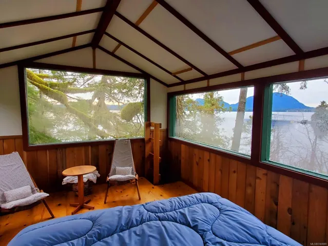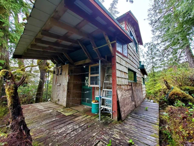 Private, remote waterfront living at its very finest. Off grid, 438 sq ft one bedroom legal cabin. Viewscape from the cabin looks south to the empty waters behind Meares Island and beyond. Ten treed acres with its own stream for a water source plumbed to the cabin. Solar powered, wood heat, propane stove and hot water. Outdoor shower, hot and cold. Fully furnished including everything needed to maintain the property. Site prep and footings for a larger building. Cell service in the area. Zoned A3, Forest Rural District. Boat access only. Moorage can be by clothesline type float in the front of the cabin, access very sturdy stairs up from the water.